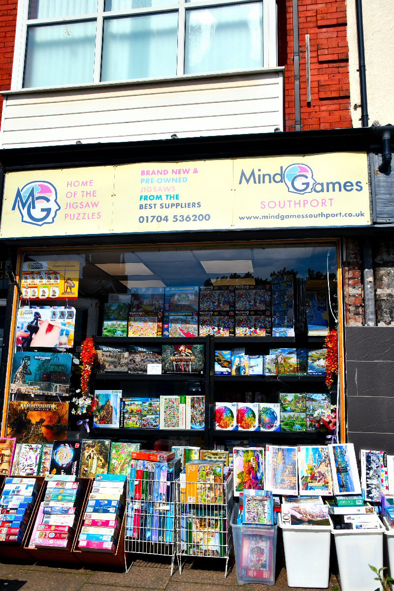 Mind Games, is a puzzle dedicated shop, stocking a full of exciting crafts and a wide range of jigsaw puzzles, suitable for all ages. The shop also includes a great selection of toys and fun amusement activities for children such as skipping ropes, colorful chalks, toy planes, and playing cards, which are a perfect travel companion. We are also a licensed Games Workshop stockist. Our shop is located on:- Hill Street, Southport, Merseyside!